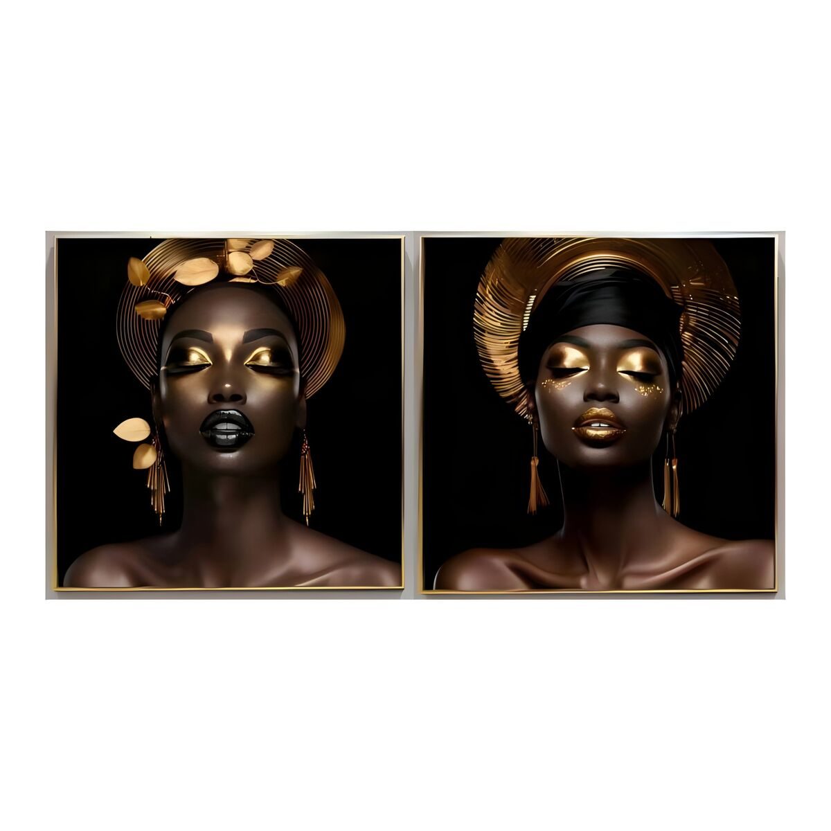 Vous voulez donner une touche d’originalité à votre maison ? Vous y arriverez grâce au Cadre Home ESPRIT Noir Doré Africaine 80 x 3,5 x 80 cm (2 Unités).
