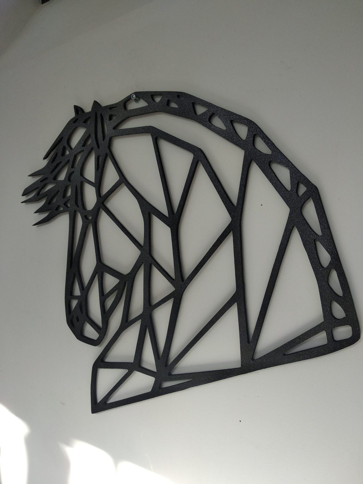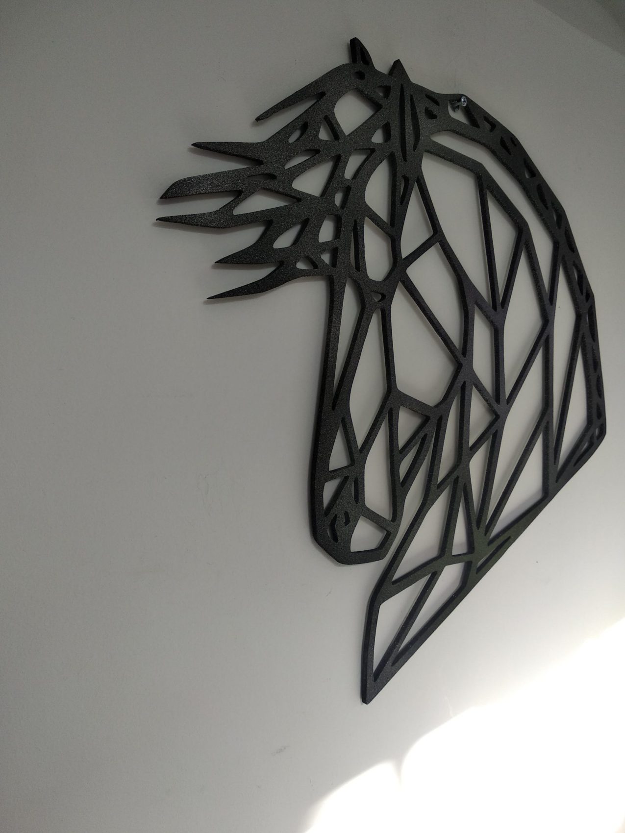 Cheval origami en MDF avec une face noire anthracite teintée dans la masse et une face peinte en noir brossé.