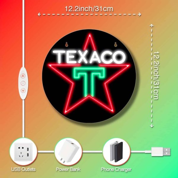 enseigne LED TEXACO rétro – panneau mural lumineux 30×30 cm