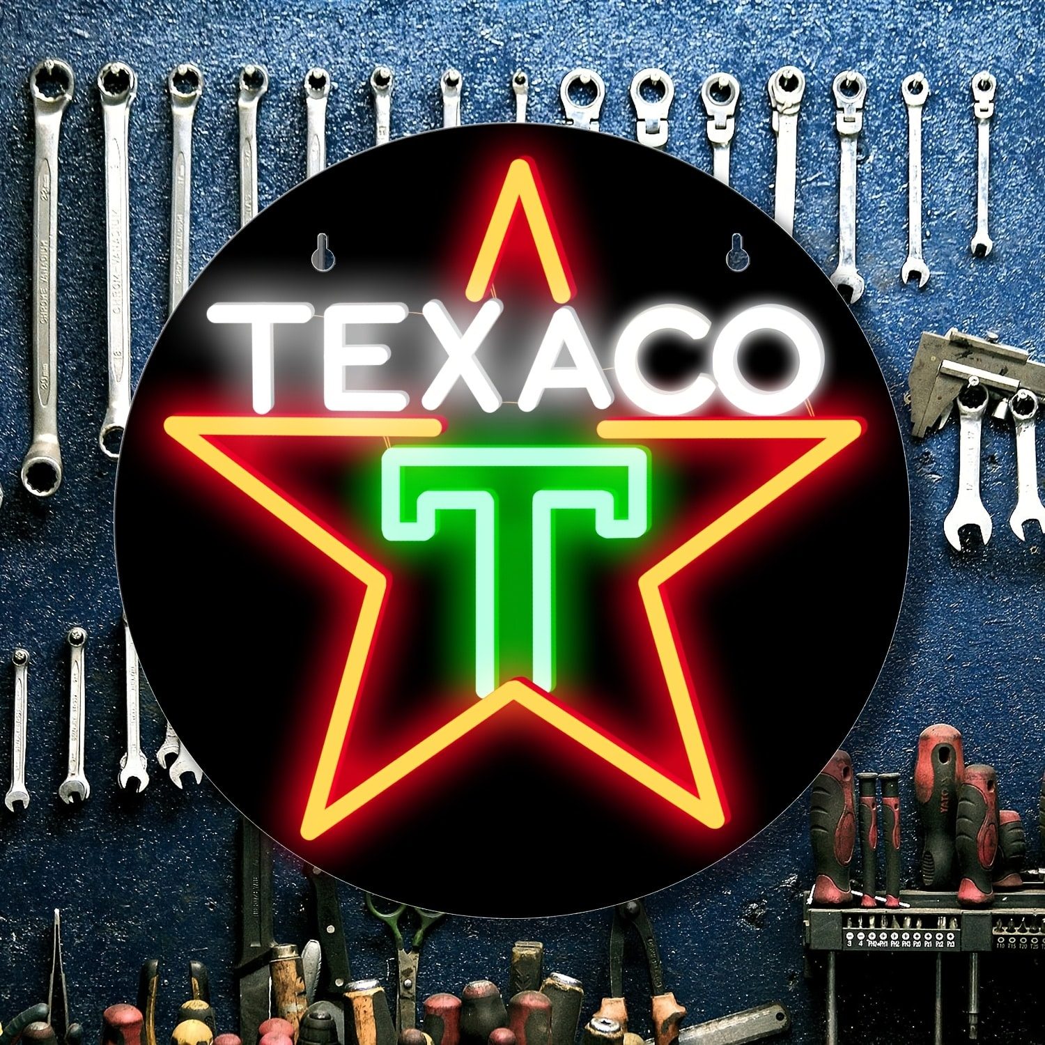 Ce modèle est une excellente idée cadeau pour un passionné de mécanique ou de deux-roues. Que ce soit pour décorer un atelier, une cave à outils ou un espace de détente, l’enseigne TEXACO ajoute une touche lumineuse et originale.
