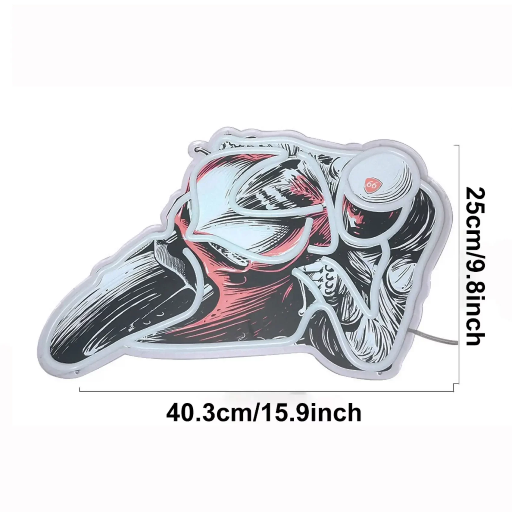Fabriquée en acrylique de haute qualité et alimentée par USB, cette lampe néon s’installe facilement sur un mur ou une étagère. Elle attire immédiatement l’œil par ses courbes et ses détails typés “moto GP”. L’éclairage LED basse consommation assure une longue durée de vie tout en consommant peu d’énergie.