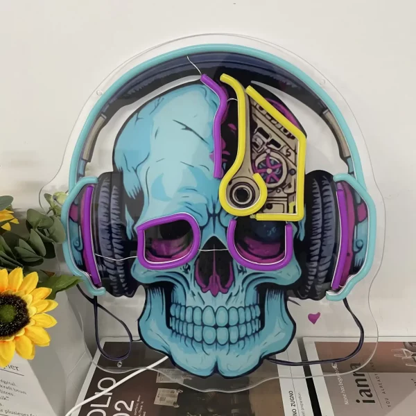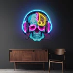 Enseigne Néon LED Tête de Mort – Crâne Multicolore avec Casque Audio