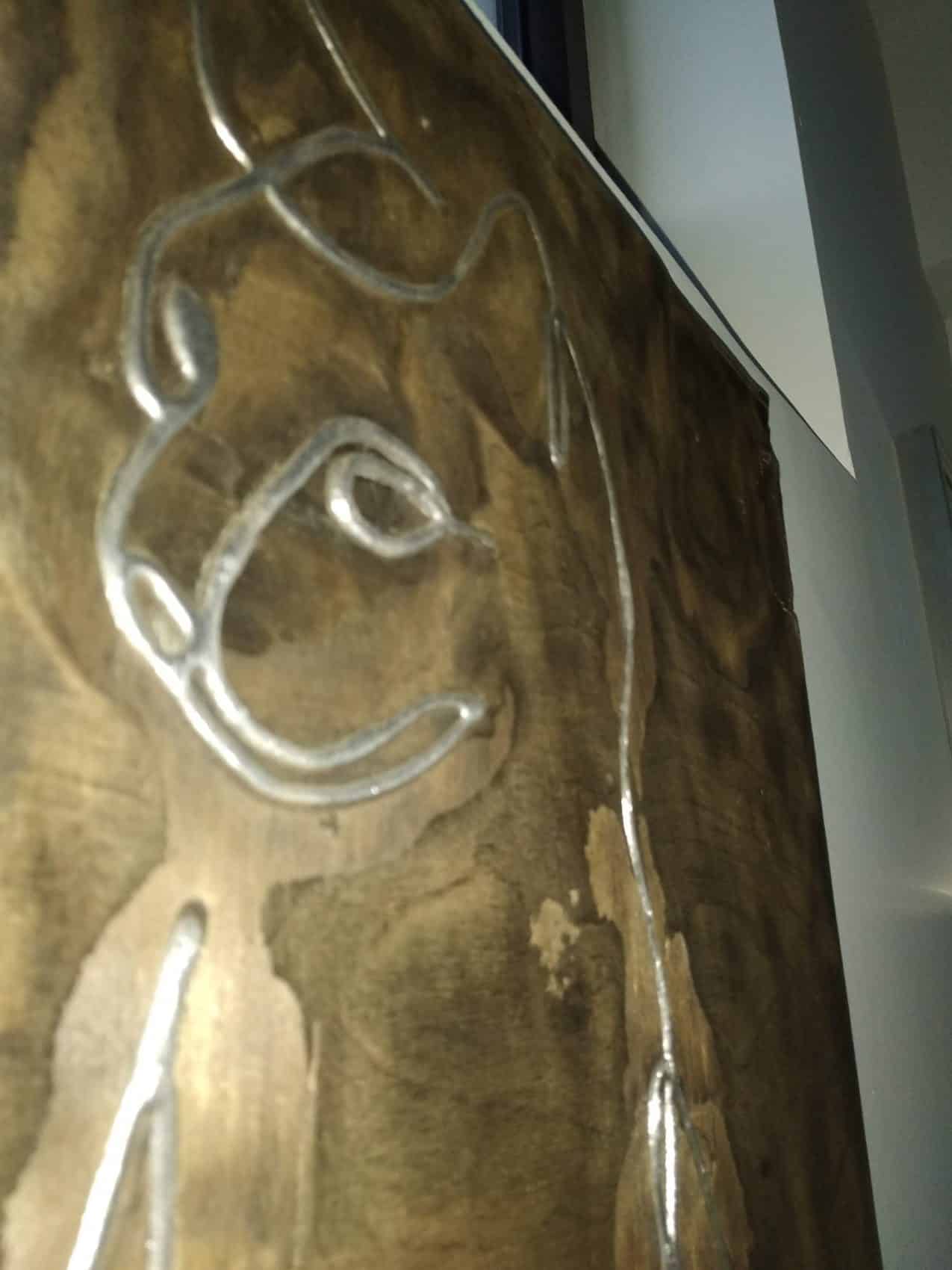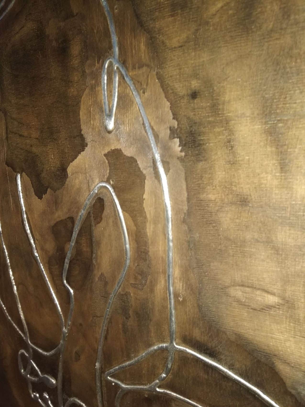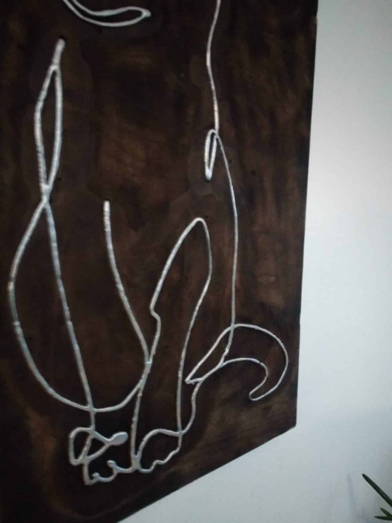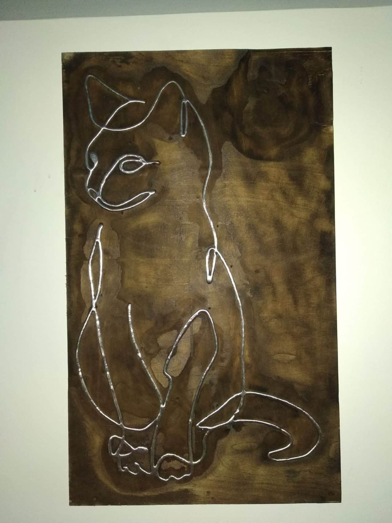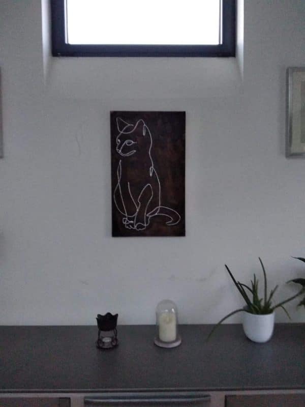 Chat déco en bois et incrustation métal coulé au chalumeau, très tendance et superbe déco originale.