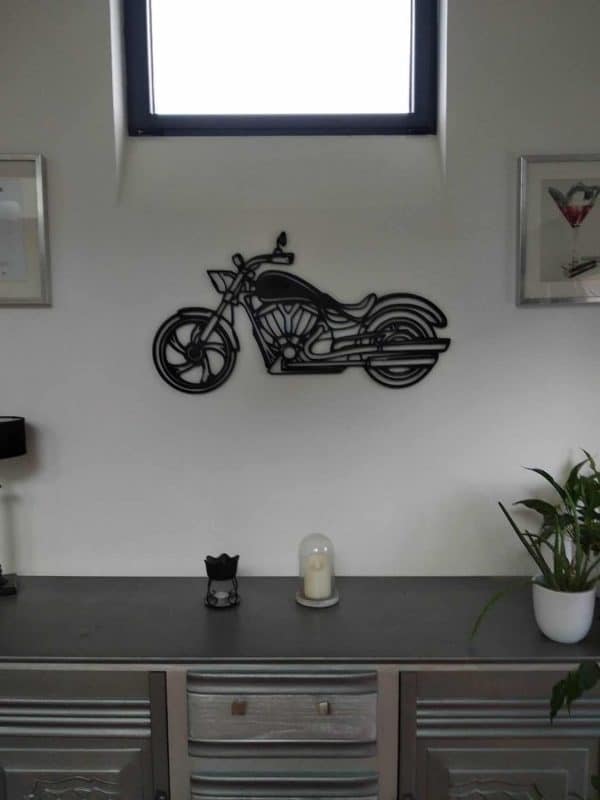 Moto Harley déco en mdf noir anthracite ou brut beige clair pour l’intérieur , peut être peint de différente couleur livrée brut très tendance et déco originale
