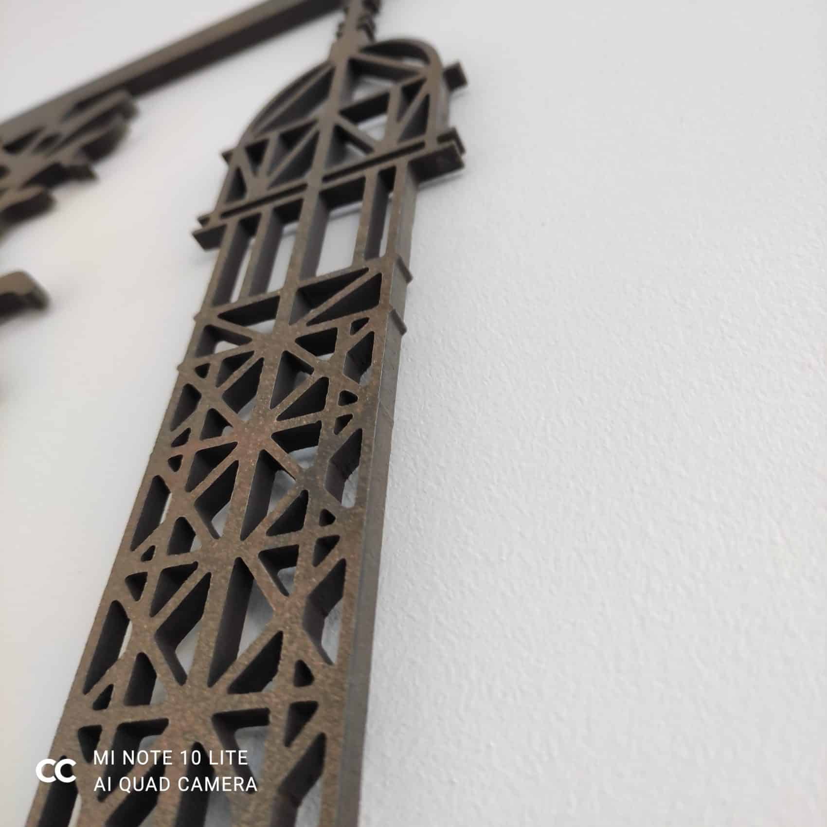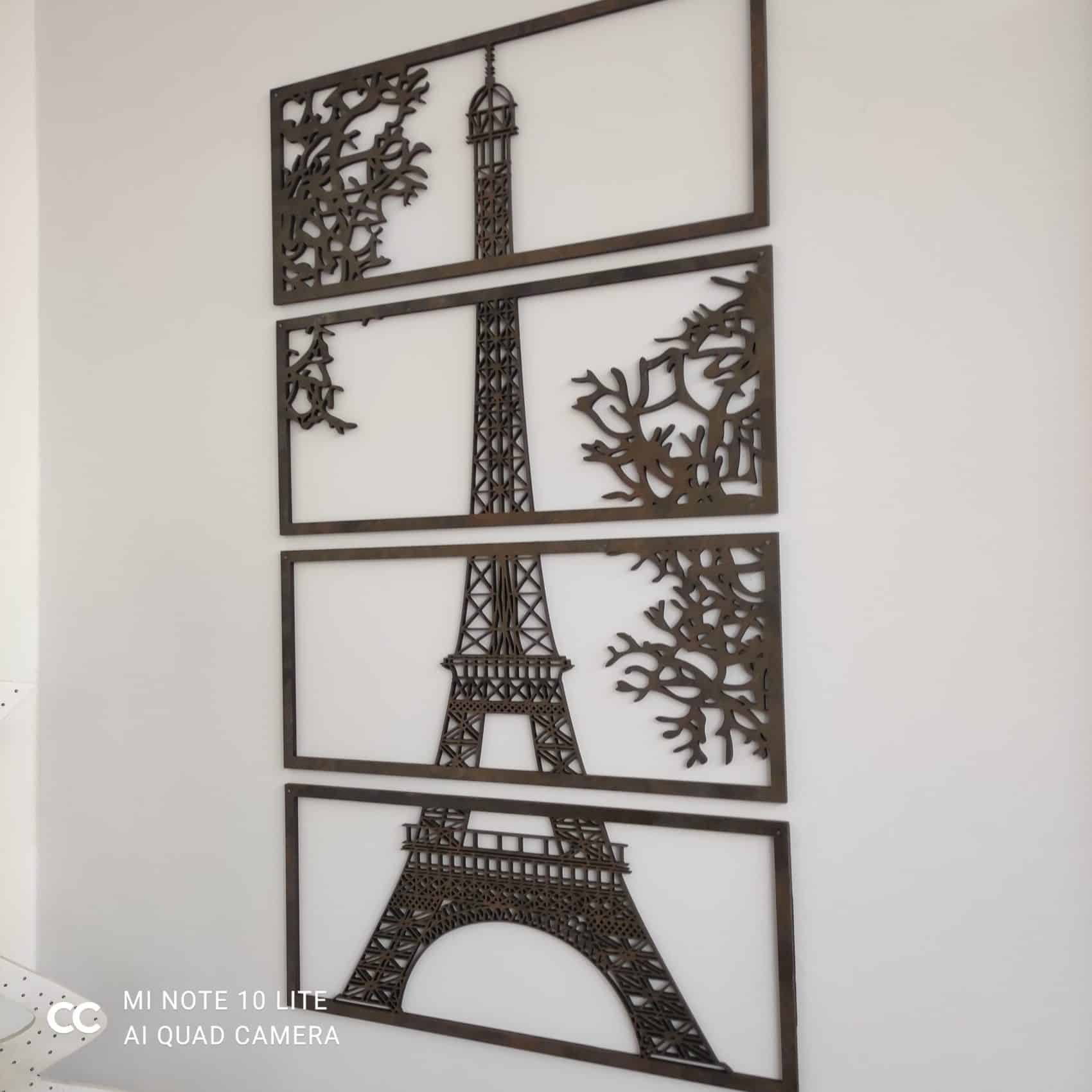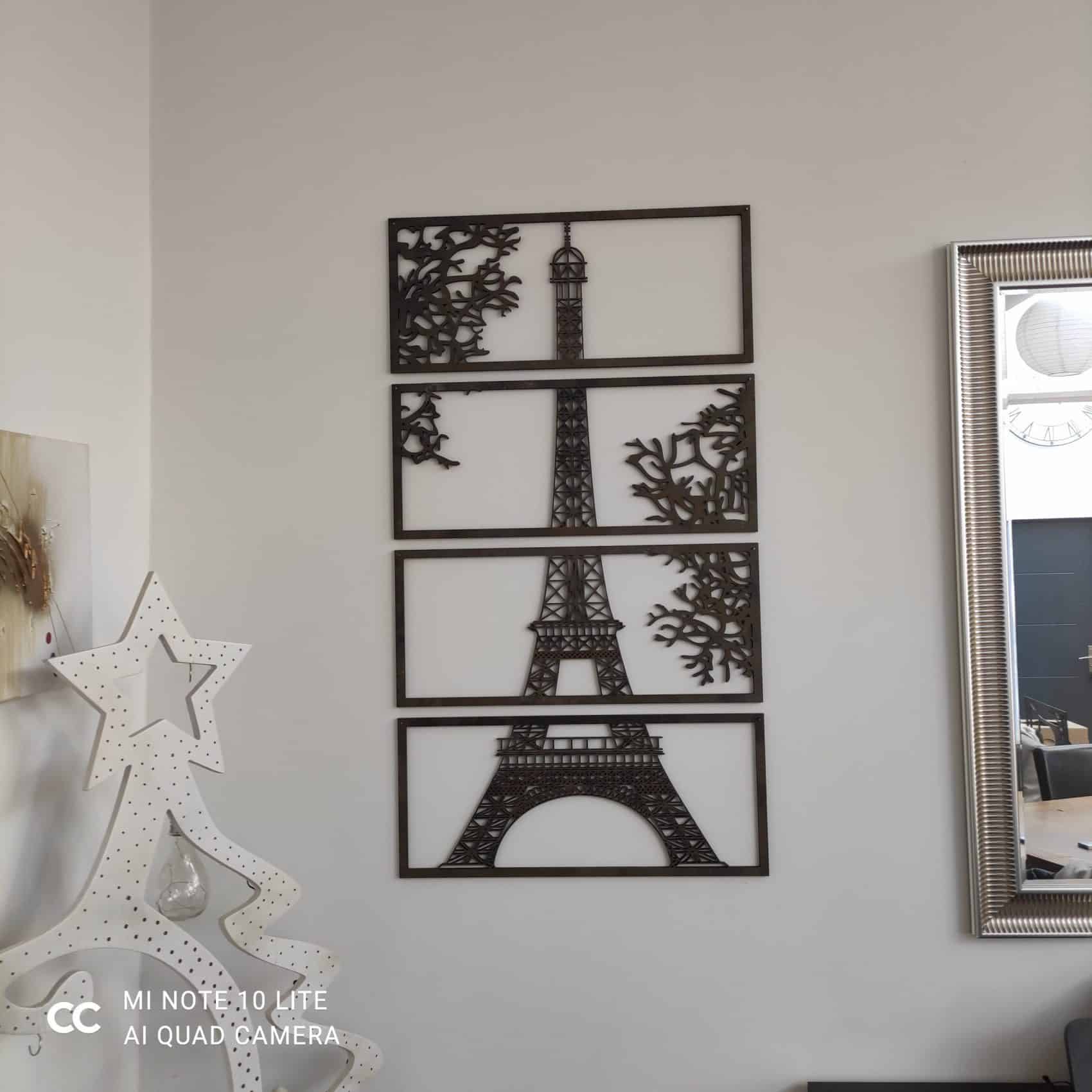 Tour Eiffel quadriptyque en MDF noir anthracite teinté dans la masse avec une face peinte en noir pour l’intérieur